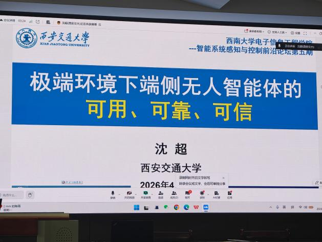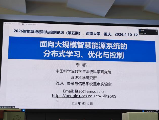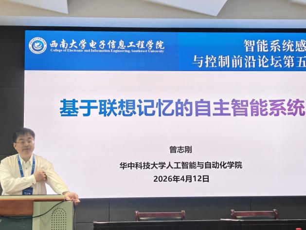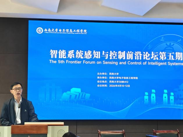 为深入贯彻落实2026年全国两会"加快发展新质生产力,深入推进人工智能赋能新型工业化"的部署要求,全面推进数字重庆建设和"满天星"行动计划实施,服务国家重要先进制造业中心和西部数字经济创新中心打造,由西南大学电子信息工程学院主办的智能系统感知与控制论坛第五期于2026年4月10日-12日在西南大学隆重举行。本期论坛以"智能驱动未来,技术赋能变革"为主题,聚焦智能科技领域的前沿突破与产业变革,致力于构建产学研协同创新生态。来自清华大学、北京大学、中国科学技术大学、华中科技大学、中南大学、重庆大学、西安交通大学、南方科技大学、华东理工大学、江南大学、昆明理工大学、哈尔滨工程大学等众多知名高校的专家学者以及学院的百余位师生参加了本次学术沙龙。