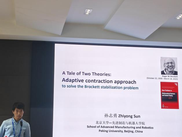 国家优秀青年科学基金(海外)获得者、北京大学工学院孙志勇研究员分享了题为《Adaptive contraction approach to solve the Brockett decentralized stabilization problem》的报告,探讨了自适应收缩方法在解决Brockett分散式镇定问题中的应用,为耦合动态系统的分散式自适应控制提供了新的理论工具。该报告由重庆市巴渝学者、重庆邮电大学朱伟教授主持。