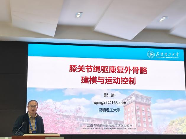 教育部国家级人才、国家优秀青年科学基金获得者、昆明理工大学机电工程学院常务副院长那靖教授分享了《膝关节绳驱康复外骨骼建模与运动控制》的报告,探讨一款膝关节绳驱康复外骨骼系统,为外骨骼在人体康复辅助及动力提升等产品的研发奠定了技术基础。该报告由重庆交通大学宋乾坤教授主持。