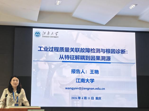 本次沙龙共有13位专家学者进行了学术报告。4月11日上午,首先由教育部国家级人才、江南大学自动化与智能科学学院王艳教授进行题为《工业过程质量关联故障检测与根因诊断:从特征解耦到因果溯源》的报告,介绍了在复杂工业过程质量关联故障检测与根因诊断方面开展的系统性研究。该报告由四川省领军人才、电子科技大学李铁山教授主持。