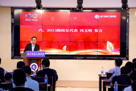 2013级校友代表冯玉明深情发言,分享了在校求学的难忘回忆,感恩母校的悉心培养,表达了对学院的深深眷恋与美好祝愿。